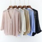 新款夏季女亞麻薄款V領七分袖針織百搭寬松空調外套