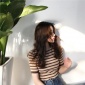 實拍批發2019早春新款韓版修身條紋針織百搭針織衫短袖T恤女